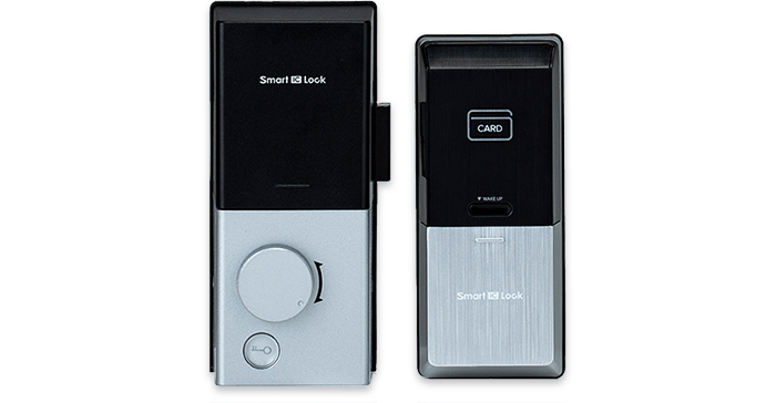 追加加工や両面テープを必要とせずに既存のドアへ設置できる特許取得構造。ICカードを鍵として使用できるほか、既存の鍵穴(キー)も併用可能。室内側からはOPEN/CLOSEボタン、および手動サムターンで施解錠ができます。